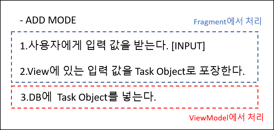 View의 값을 읽기 위해서는 EditText 등 입력에 관여하는 View를 사용해야하므로 Fragment에서 처리한다.