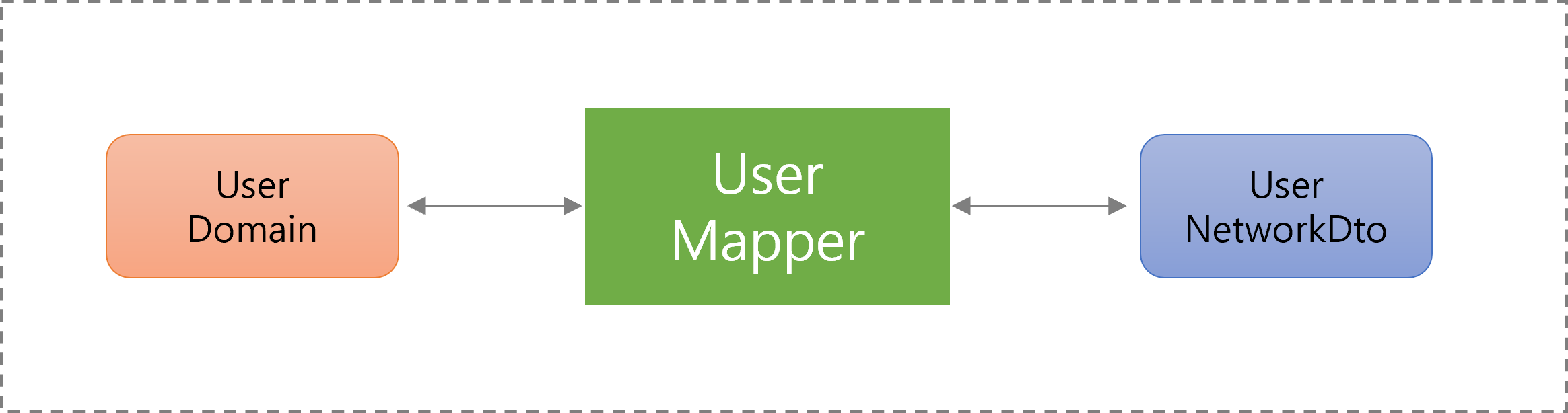 하지만 다른 모델과 다르게 NetworkDto는 서버의 스펙을 따라가는 자료형이므로, 애플리케이션의 의지와 상관없이 변경이 발생할 수 있는 데이터 모델이다. 그럼으로 NetworkDto는 반드시 별도의 자료형을 두어 사용하는 것이 적극 권장된다.