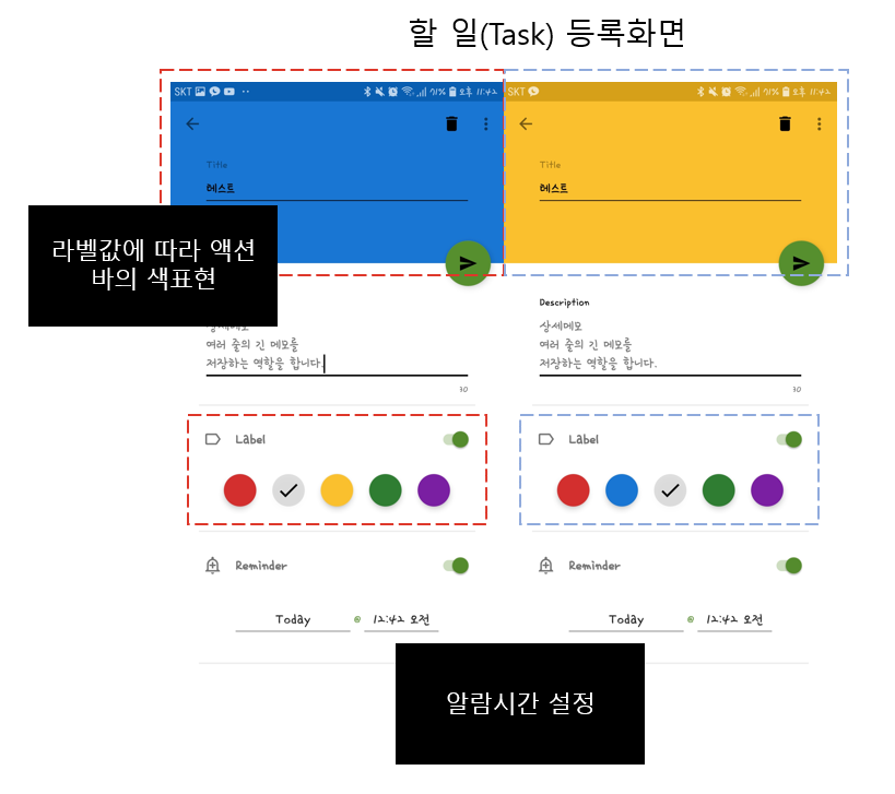 라벨 색상으로 할 일을 분류할 수 있도록 구현하였습니다.