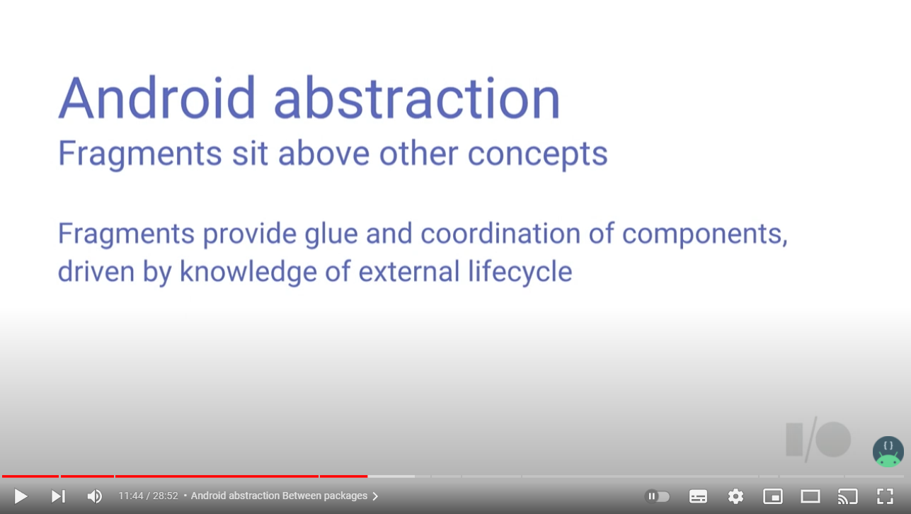 What the Fragment? Google I/O 2016에서도 마찬가지로 Android abstraction between packages에 대해서 발표한 것을 찾아볼 수 있다.