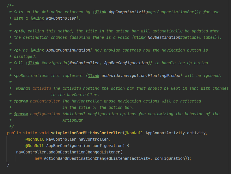 AppCompatActivity#getSupportActionBar()를 통해 ActionBar를 획득한 후, NavController와 연결시킨다.