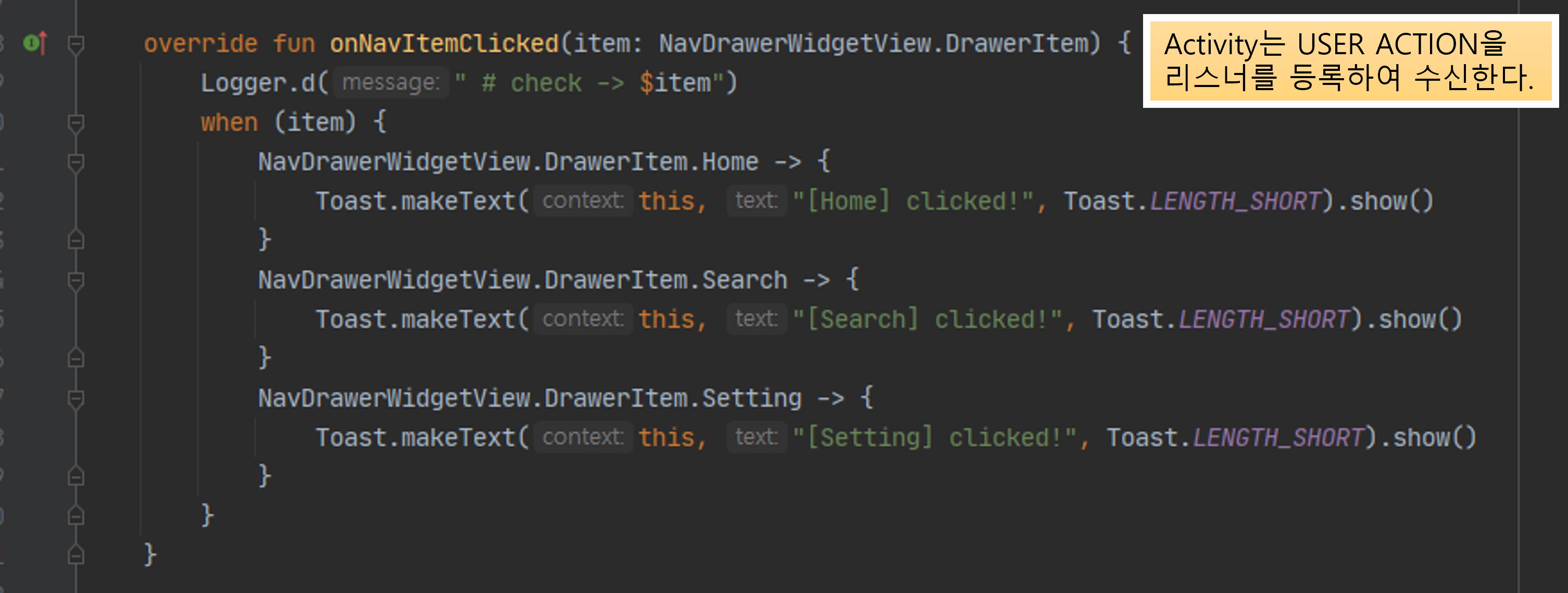 - Activity는 클릭된 Drawer 아이템을 보고받는다.
